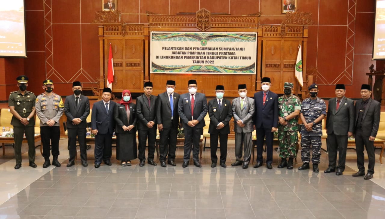Berita3.net, SANGATTA – Bupati Kutai Timur (Kutim) H Ardiansyah Sulaiman melantik empat Pimpinan Pejabat Tinggi Pratama. Pelantikan dan Pengambilan sumpah Pejabat Eselon dua dilaksanakan di Ruang Meranti, Kantor Bupati Kutim, Selasa (21/6/2022).