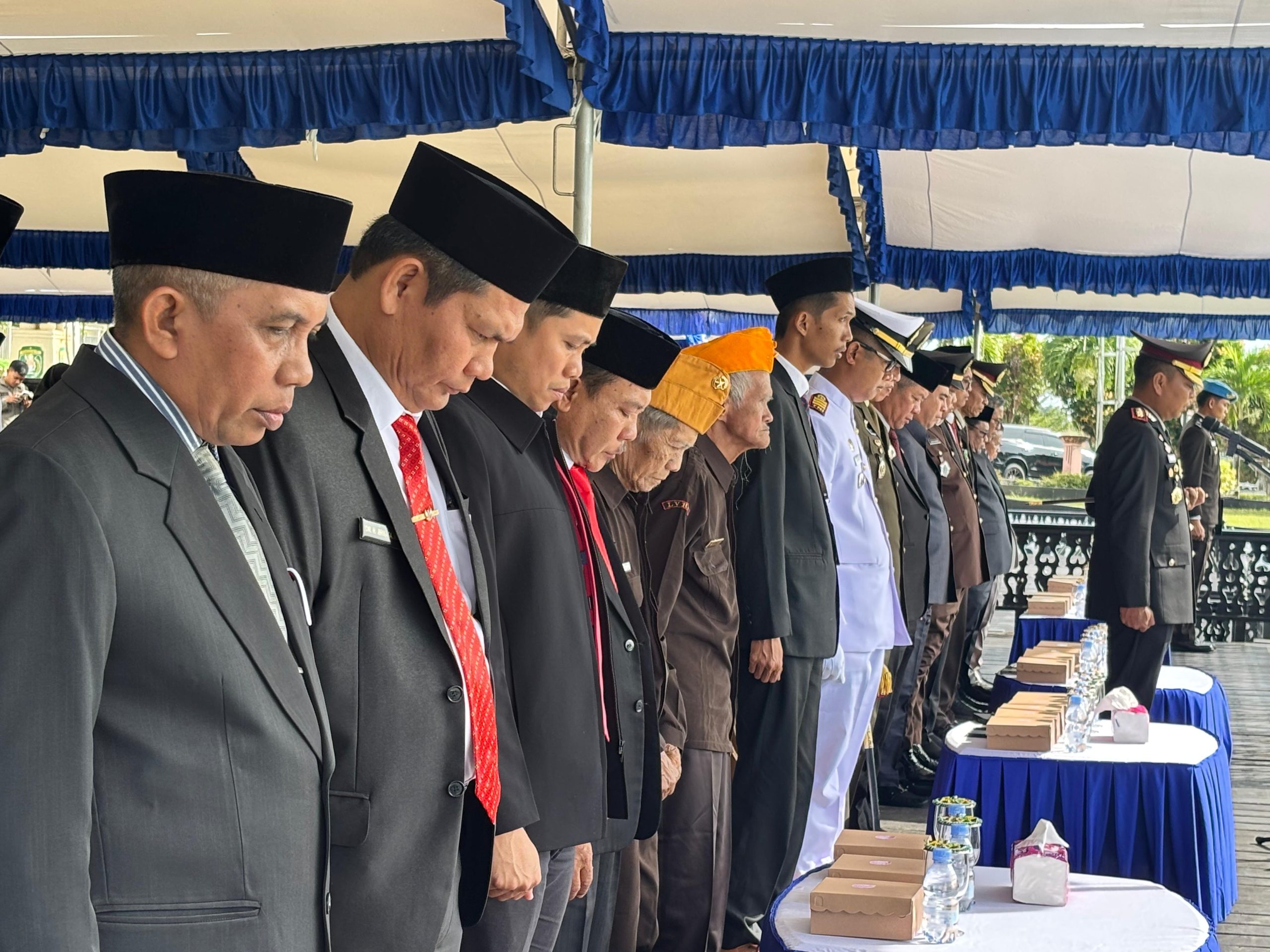Suasana upacara semakin syahdu saat peserta mengheningkan cipta untuk mengenang jasa para pahlawan. Lantunan lagu “Gugur Bunga” oleh paduan suara pelajar menambah kedalaman makna peringatan hari bersejarah ini.