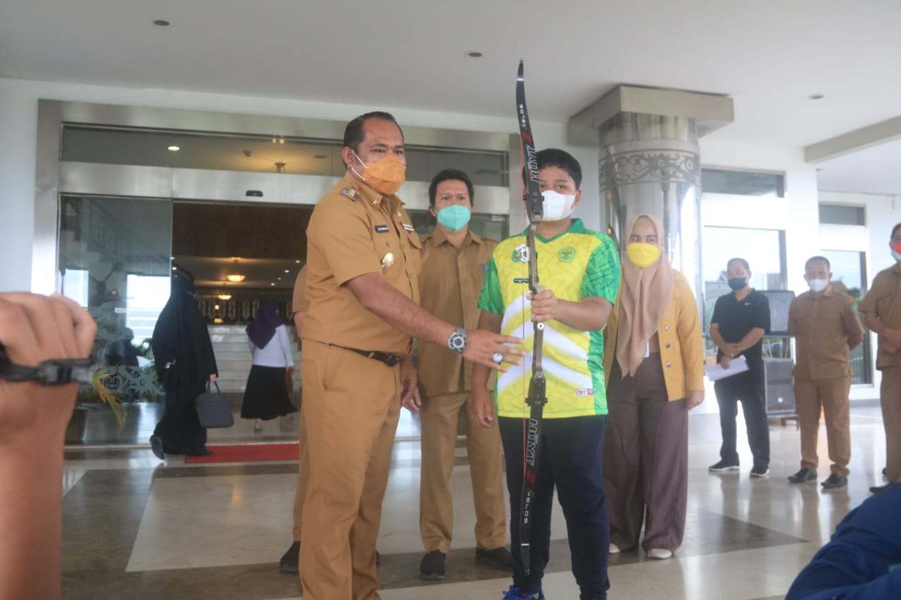 Berita3.net, SANGATTA – sebanyak 33 atlet panahan di lepas Wakil Bupati Kutai Timur (Kutim) Kasmidi Bulang di halaman kantor Sekertariat Kabupaten (6/12/2021) pagi. untuk mengikuti kejuaraan Gubernur Cup Kalimantan Timur Tahun 2021 yang akan di gelar pada 9-12 Desember mendatang di Samarinda.