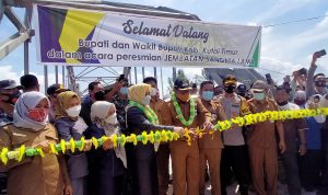 Hadir dalam peresmian jembatan, Wakil Ketua DPRD Kutim, Asti Mazar, merasa terharu dan bangga atas diresmikannya jembatan tersebut.