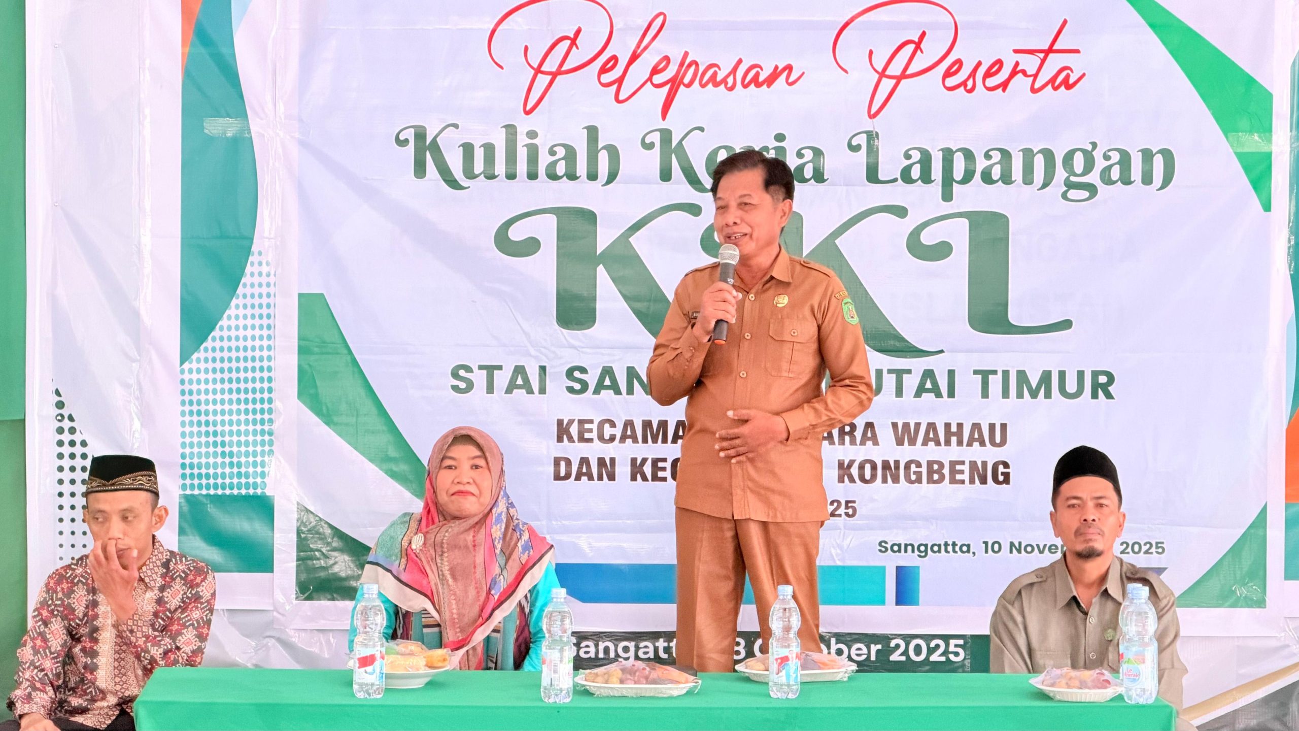 Berita3.net, SANGATTA – Sebanyak 145 mahasiswa dan mahasiswi Sekolah Tinggi Agama Islam Sangatta (STAIS) dilepas menuju lokasi Kuliah Kerja Lapangan (KKL) di Kecamatan Muara Wahau dan Kombeng, Kabupaten Kutai Timur (Kutim). Kegiatan pelepasan berlangsung di Masjid STAIS, Senin (10/11/2025), dipimpin oleh Asisten Administrasi Umum Seskab Kutim, Sudirman Latif.