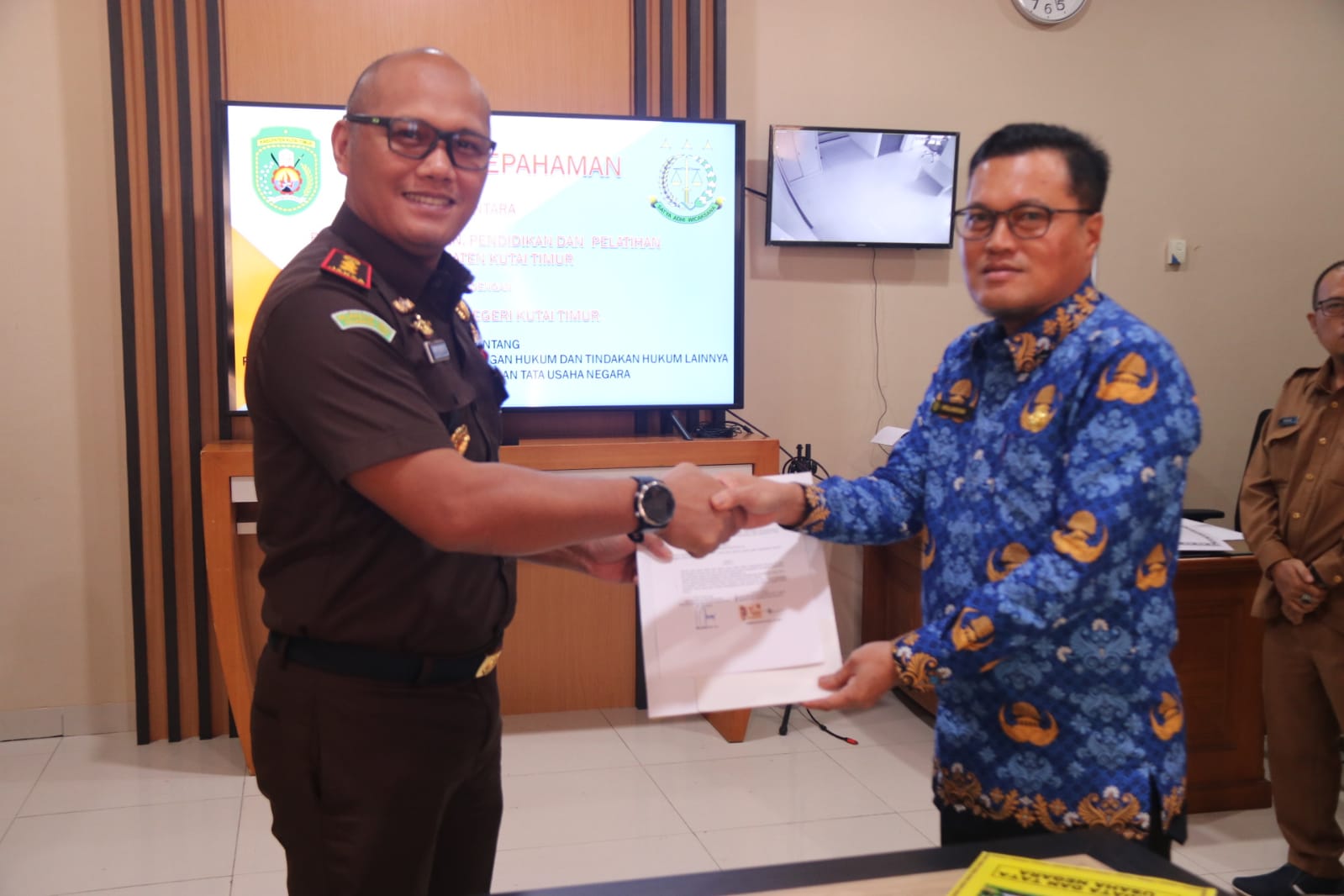 Berita3.net, SANGATTA – Kepala Badan Kepegawaian Pendidikan dan Pelatihan (BKPP) Kutai Timur (Kutim) Misliansyah dan Kepala Kejaksaan Negeri (Kejari) Kutim Henriyadi W Putro belum lama ini menandatangani Memorandum of Understanding (MoU) atau Nota Kesepahaman. MoU tersebut menyangkut tentang pemberian bantuan hukum, pertimbangan hukum dan tindakan hukum lainnya. Dalam bidang perdata dan tata usaha negara.