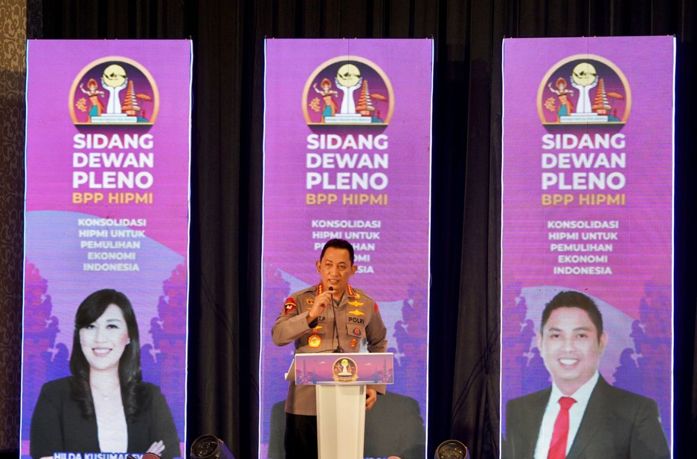 Sementara itu, Kapolri Jenderal Listyo Sigit Prabowo yang juga hadir meminta kepada seluruh pengurus maupun anggota Himpunan Pengusaha Muda Indonesia (HIPMI) untuk mengawal serta mendukung seluruh kebijakan yang dikeluarkan oleh Pemerintah terkait dengan pertumbuhan perekonomian Indonesia ditengah Pandemi Covid-19.