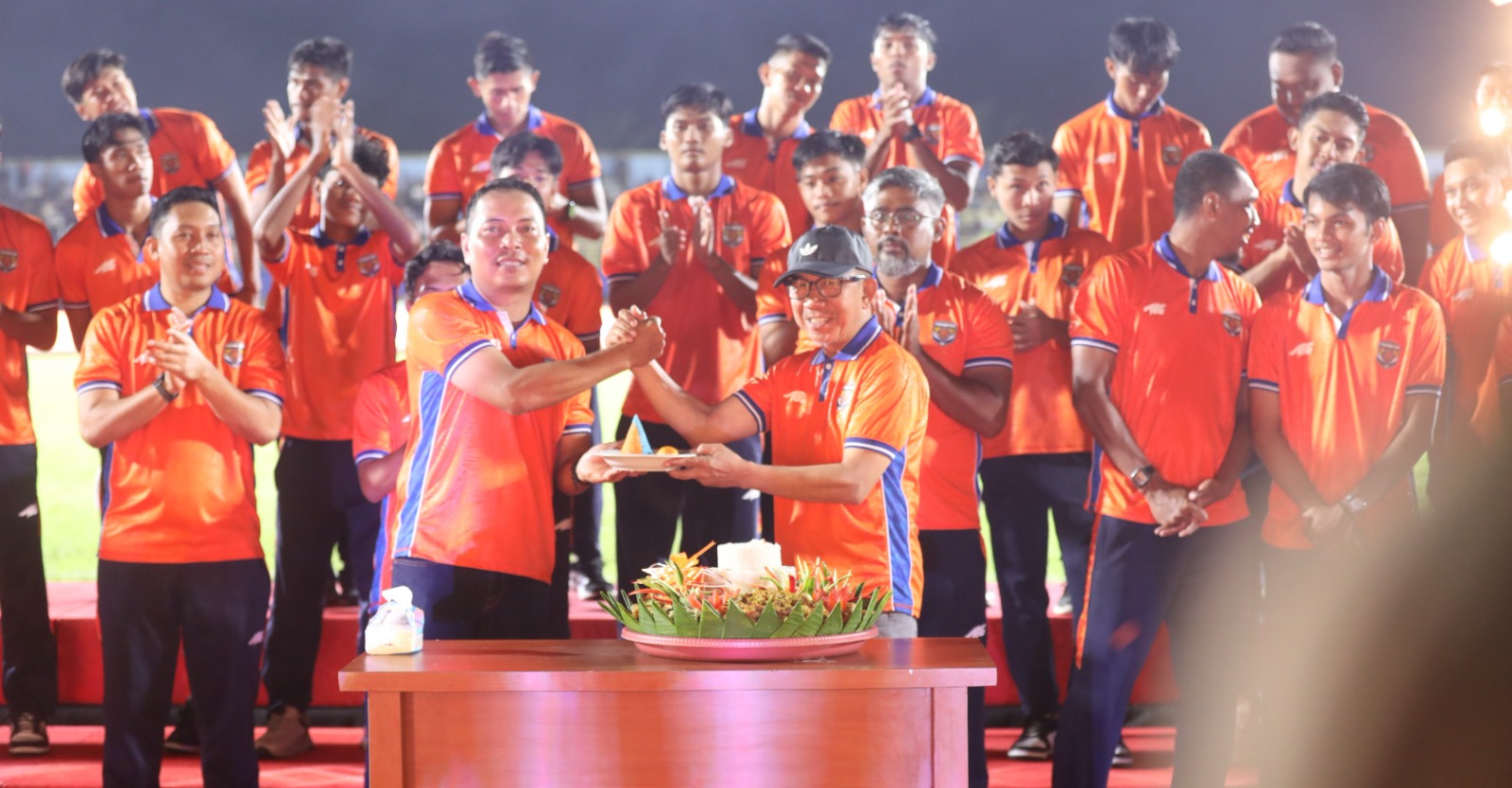 “Klub ini akan berlaga di Liga 3 Nusantara. Mari kita dukung bersama. Kalau saya teriakkan Persikutim United, jawabannya Tuah Bumi Untung Benua!” pekiknya yang langsung disambut gemuruh penonton.