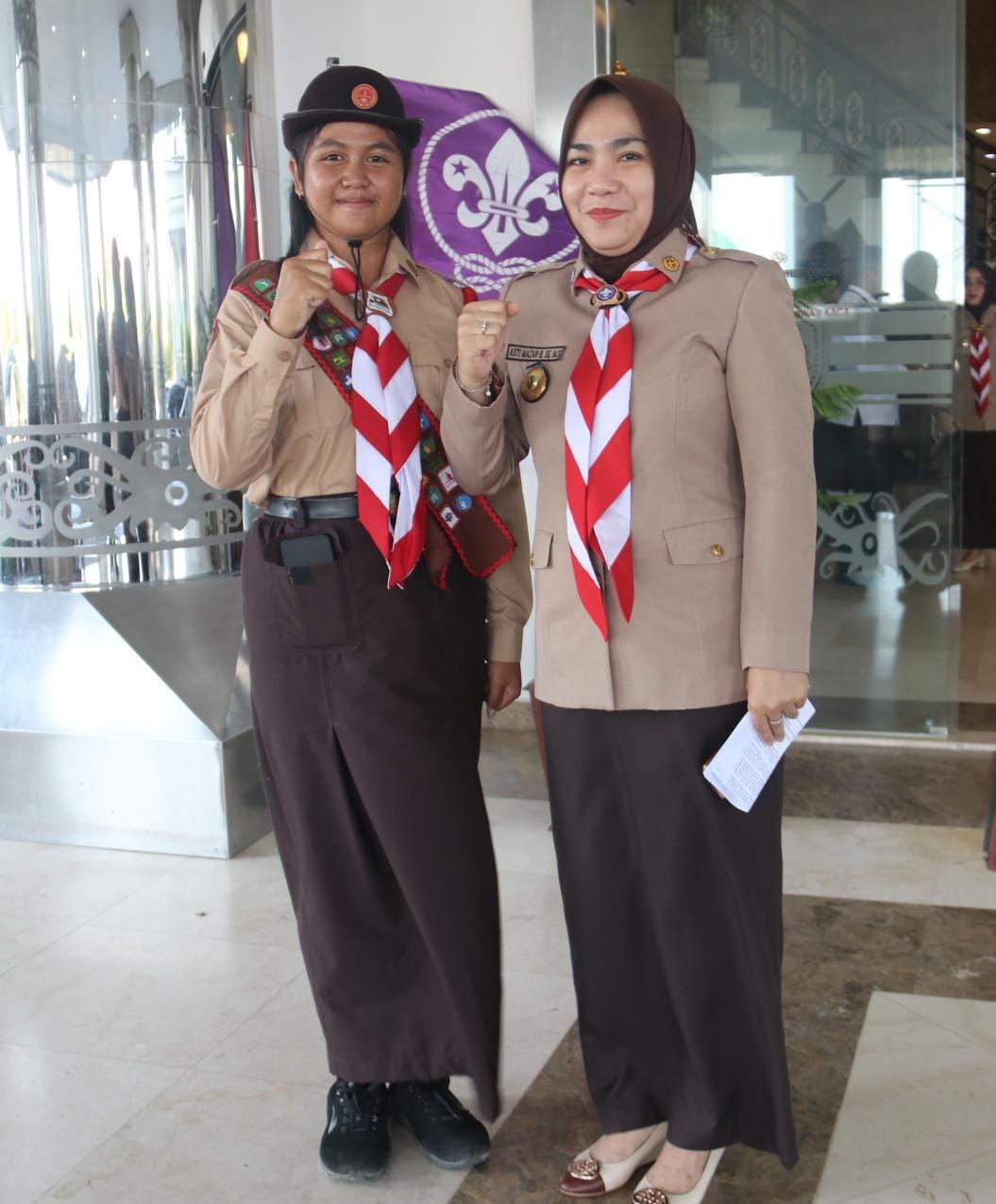 Foto bersama Dela dengan Ketua Kwarcab Pramuka Kutim Asti Mazar Bulang