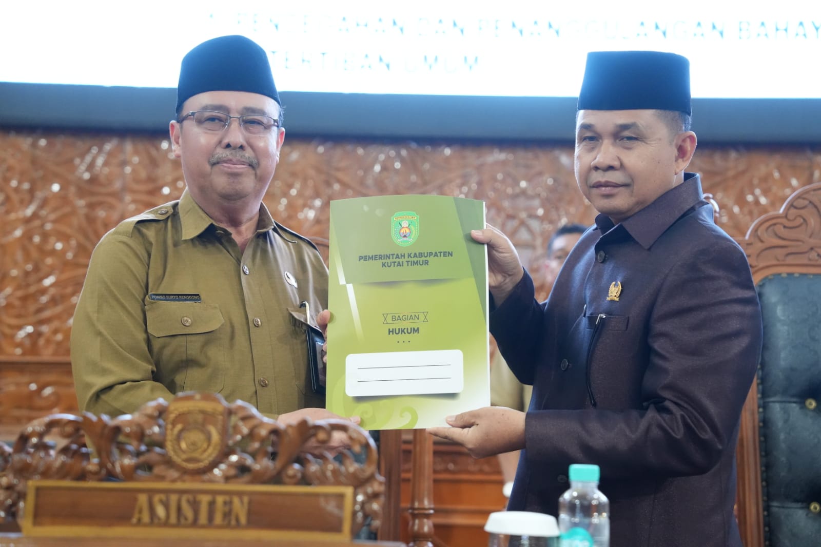 Dipimpin Joni selaku ketua DPRD Kutim, nota penjelasan terkait pencegahan dan penanggulangan bahaya kebakaran dan ketertiban umum, dibacakan oleh Asisten Pemerintahan Umum dan Kesejahteraan Rakyat (Pemkesra) Kabupaten Kutai Timur (Kutim), Poniso Suryo Renggono, Senin (13/5/2024).