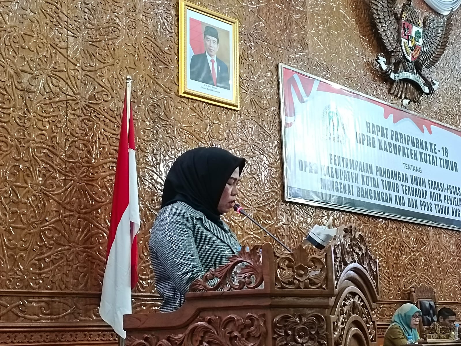 Rapat paripurna yang dipimpin Ketua DPRD Kutim Joni, adalah agenda penyampaian pandangan umum fraksi dalam dewan terhadap nota penjelasan pemerintah terkait Rancangan Kebijakan Umum Anggaran (KUA) dan Prioritas Plafon Anggaran Sementara (PPAS) APBD tahun 2024. Seperti pandangan umum fraksi partai golkar yang dibacakan oleh Hasna.
