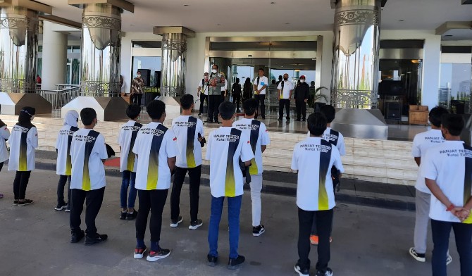 Turut hadir dalam pelepasan kontingen, Basuki Isnawan (Ketua Umum), Miswan Prima Putra (Seretaris Umum), Ahyar (Ketua Harian), Dayang Rika (Bendahara Umum), Misbachul Choir (Penasehat FPTI Kutim) dan Fitriadi (Pelatih)