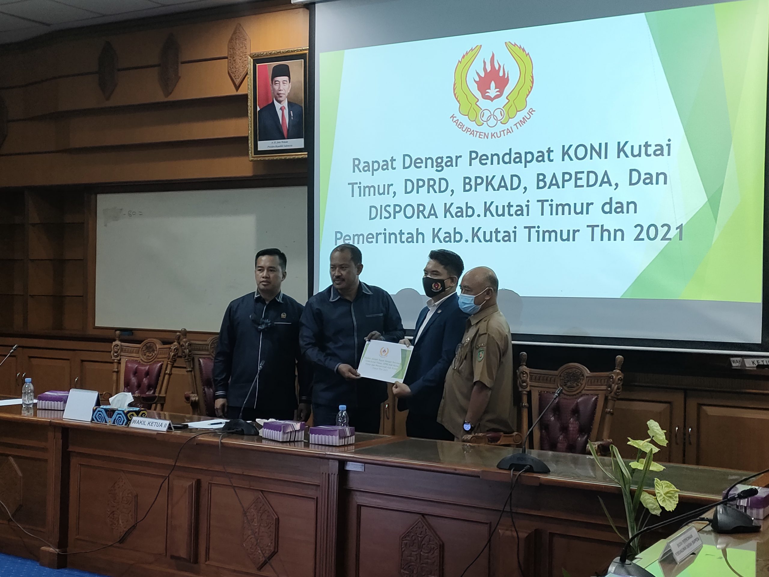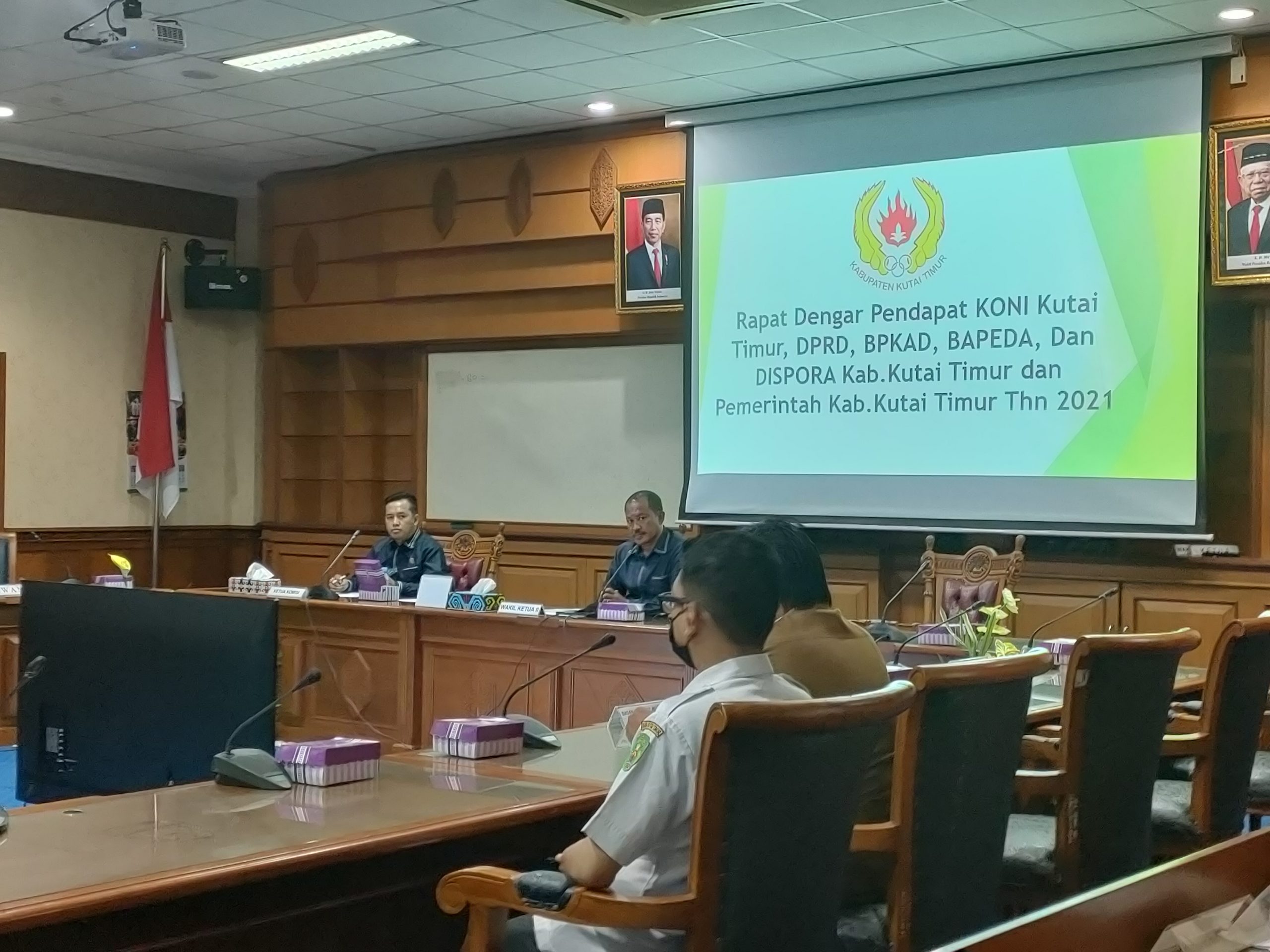 Berita3.net, Sangatta –Pengurus KONI Kutai Timur (Kutim) menggelar Rapat Dengar Pendapat (RDP) bersama DPRD Kutim terkait dengan Persiapan Pekan Olahraga Provinsi (PORPROV) ke VII di Berau Tahun 2022, di ruang Hearing Sekretariat Kantor DPRD Kutai Timur, Senin (15/11/2021) siang.
