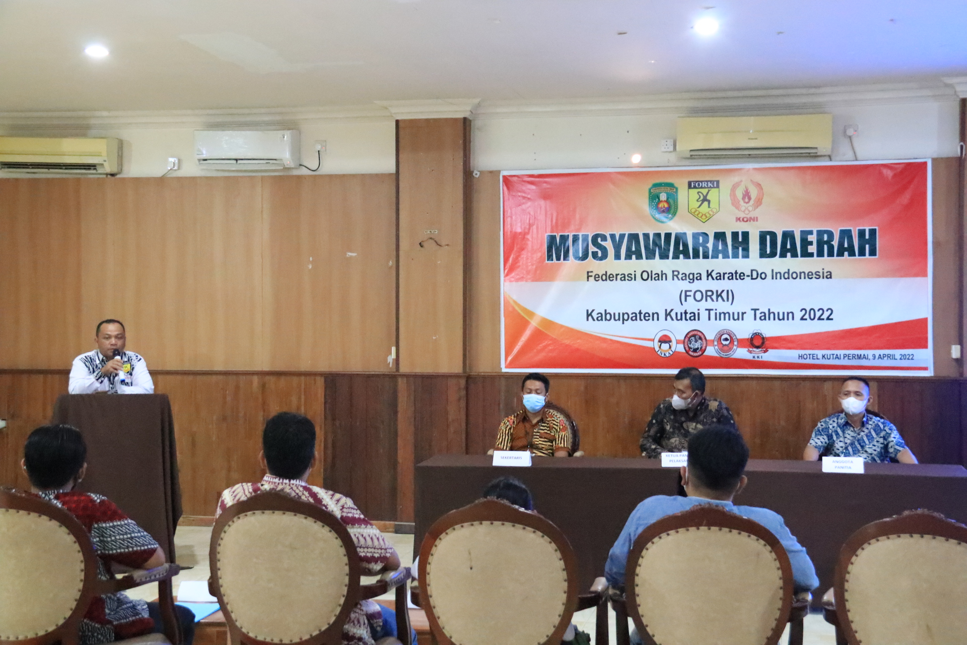 Berita3.net, Sangatta –Pengurus Federasi Olahraga Karate-Do Indonesia ( FORKI) Kutai Timur menggelar Musyawarah Kabupaten Tahun 2022 di Aula Hotel Kutai Permai, Sabtu (09/04/2022).