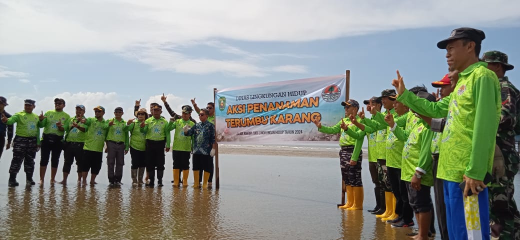 Berita3.net, SANGATTA – Hari Lingkungan Hidup Sedunia yang jatuh pada 5 Juni 2024 lalu diperingati Dinas Lingkungan Hidup (DLH) Kutim dengan melakukan aksi penyelamatan lingkungan dan dipusatkan di kawasan Pantai Teluk Lingga Sangatta Utara dengan melakukan penanaman terumbu karang, penyulaman mangrove dan bersih pantai, Jumat (21/6/2024) pagi. Hal ini dilakukan sebagai upaya penyelesaian krisis iklim dengan inovasi dan prinsip keadilan area pantai.