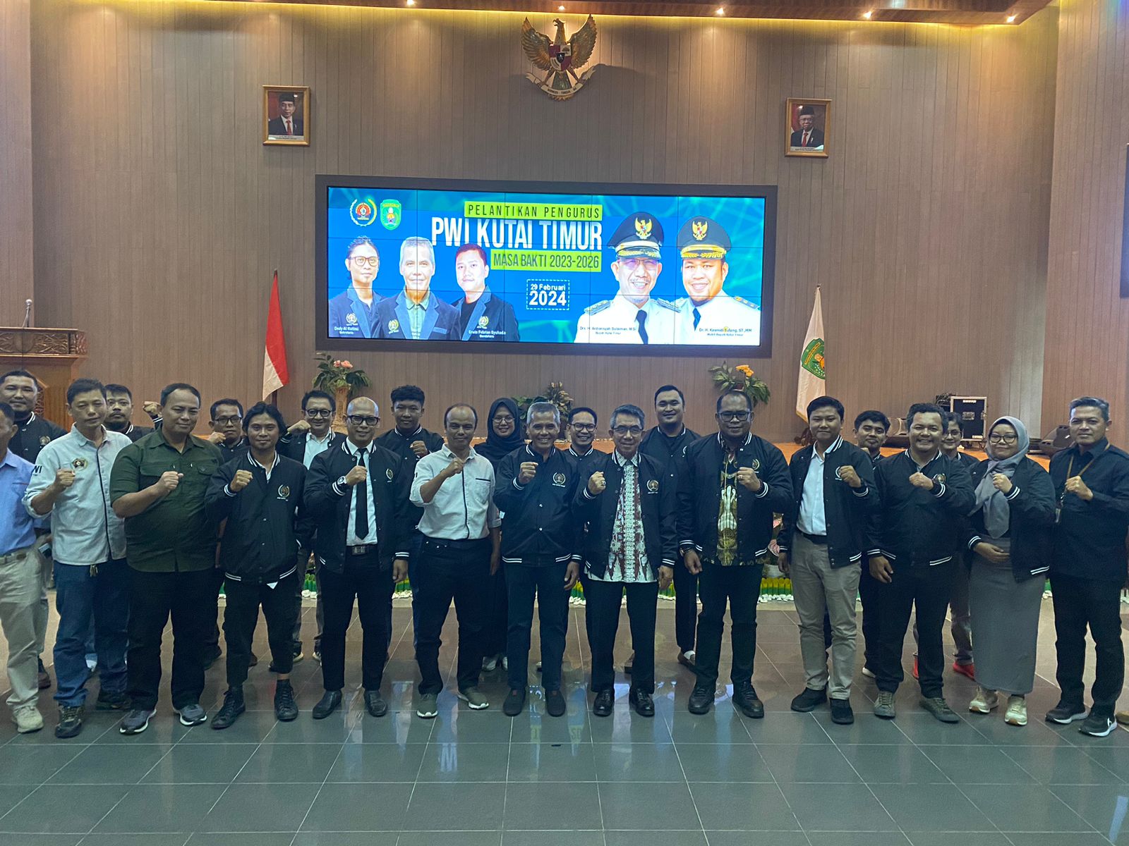 “PWI ini terbentuk setahun setelah Hari Kemerdekaan Republik Indonesia tepatnya pada 9 Februari 1946 silam. Saya harapkan seluruh anggota kepengurusan PWI Kutim yang baru saja dilantik punya tanggung jawab menjunjung tinggi harkat dan martabat wartawan terutama dalam kontribusi membawa pena kemerdekaan pers, dalam koridor kebenaran pemberitaan,” tegas Ardiansyah yang tampil kompak mengenakan seragam jaket bomber PWI Kutim warna hitam dengan les putih bersama Wakil Bupati (Wabup) Kutim Kasmidi Bulang yang turut hadir bersama Asisten III Administrasi Umum Sudirman Latif, Plt Ketua PWI Kaltim Achmad Sahab, Sekretaris PWI Kaltim Wiwid Marhaendra Wijaya, perwakilan Forkopimda Kutim, Perangkat Daerah hingga perusahaan.
