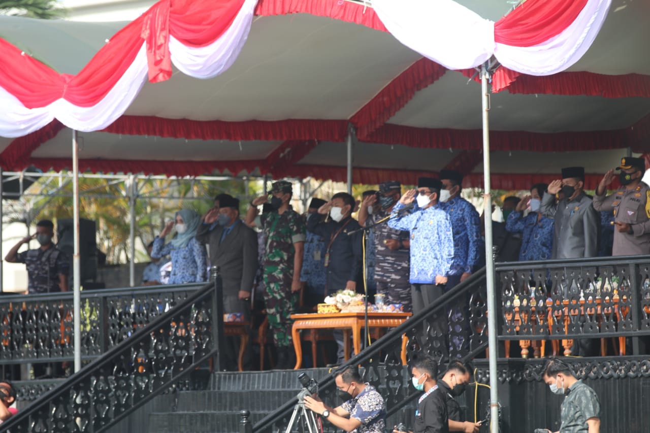 Upacara yang digelar secara serentak se Indonesia ini mengambil tema bergerak dengan hati pulihkan Pendidikan ini dihadiri oleh Wakil Bupati Kasmidi Bulang,unsur Forkopimda Kepala OPD, perwakilan Guru serta undangan lainnya.