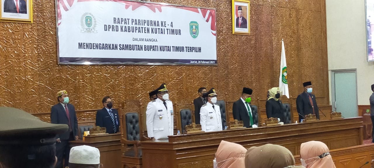 BERITA3.NET SANGATTA – Rapat paripurna ke-4 DPRD Kutai Timur, dalam rangka mendengar sambutan Bupati Kutim sukses dilaksanakan, Jumat (26/2/2021) sore.