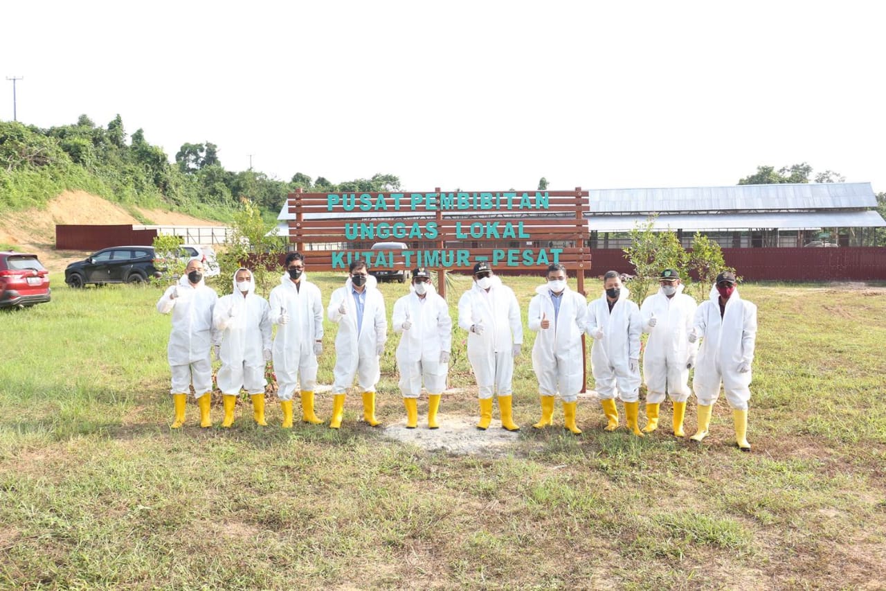 Berita3.net, Sangatta – Bupati Kutai Timur Drs H. Ardiansyah Sulaiman M.Si, Bersama Wakil Bupati Kutai Timur Dr H Kasmidi Bulang ST MM, Chief Operating Officer (COO) Muhammad Rudy, General Manager External Affairs and Sustainable Development (ESD) Wawan Setiawan, Dinas Peternakan Provinsi Kaltim Rofik ST MT, Sekretaris Himpunan Peternak Unggas Lokal (HIMPULI) Kaltim Andrie Yuniarsa dan PT Yakin Sukses Bersama (YSB) selaku operator lapangan menghadiri Peresmian Pusat Pembibitan Unggas Lokal Kutai Timur, yang dibangun pada lahan pascatambang D2 Murung, samping Peternakan Sapi Terpadu (PESAT), Kabo Jaya. Rabu (13/10/2021).