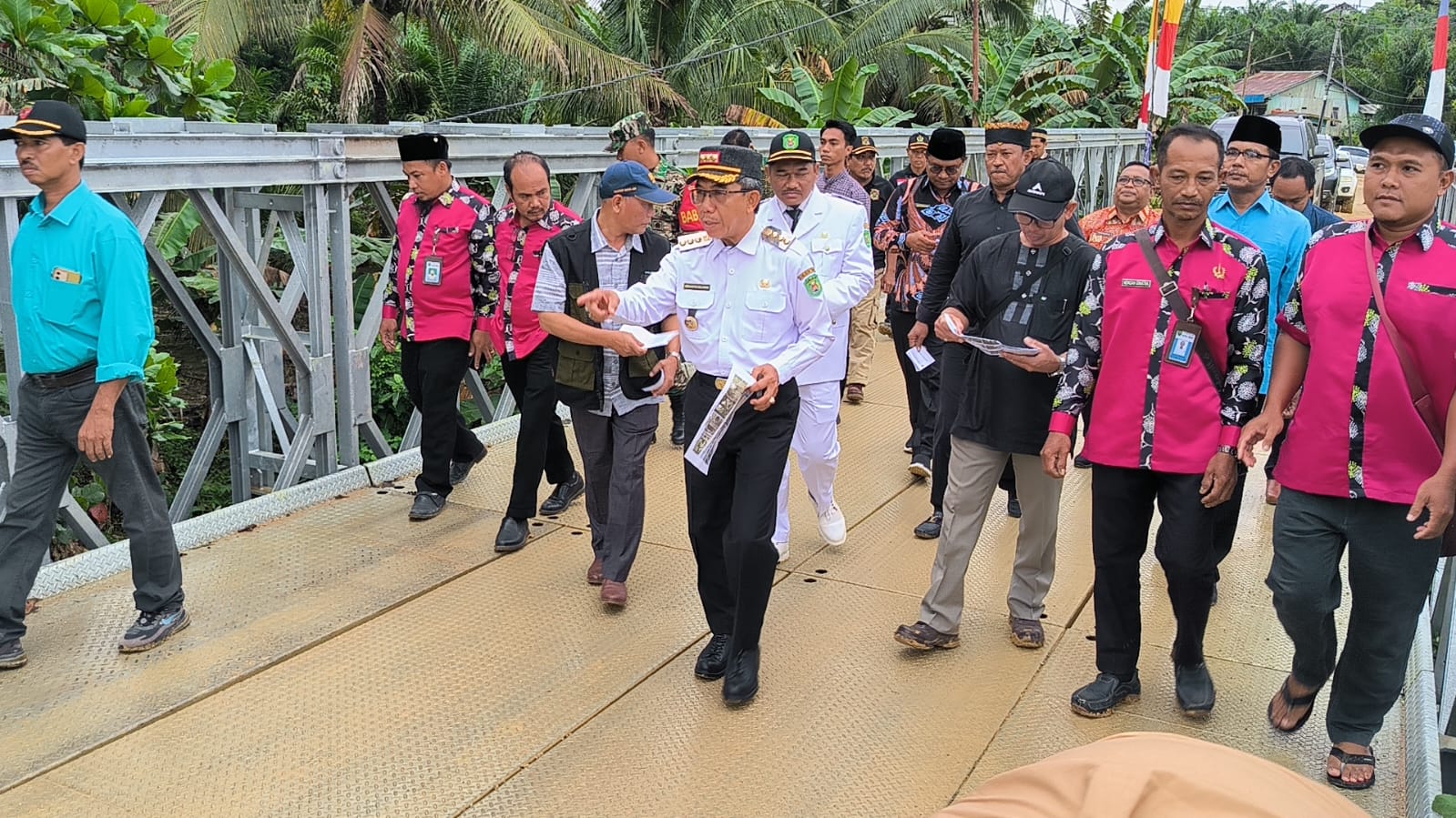 “Walaupun Jembatan Bailey Bukit Harapan ini sudah terganti namun masih sifatnya sementara. Tapi jangan takut meskipun sementara jembatan ini kuat. Berton-ton di atasnya masih aman,” ucapnya.