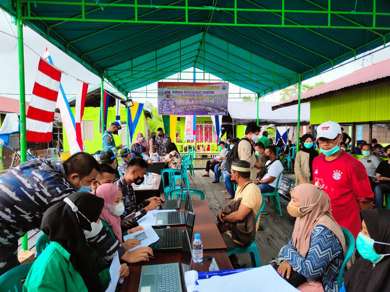 Ditemui di sela kegiatan yang bertempat di dermaga Desa Pulau Miang, Kecamatan Sangkulirang, Danlanal menyampaikan bahwa dalam kegiatan vaksinasi tersebut, Lanal Sangatta melaksanakan kegiatan Vaksinasi Covid-19 tahap 1 kepada warga maritim di pulau tersebut.