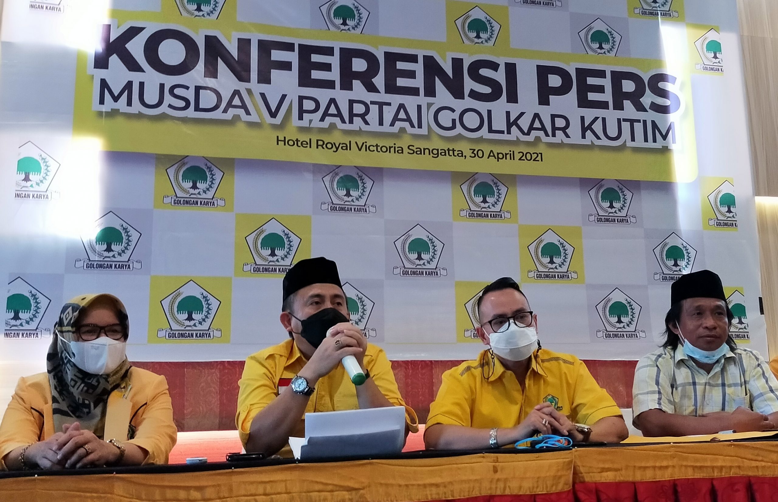 BERITA3.NET SANGATTA – Teka teki Musyawarah Daerah V Partai Golkar, terjawab. Jumpa pers di Hotel Royal Viktoria, Jumat (30/4/2021) sore, menetapkan pelaksana Agenda Musda V Golkar.