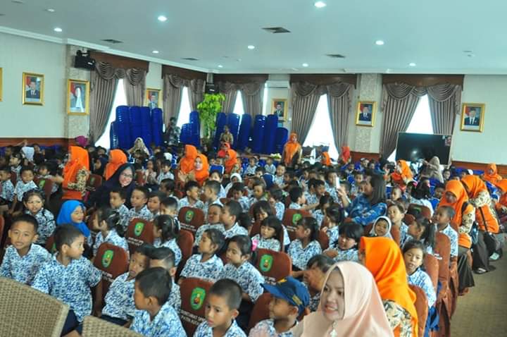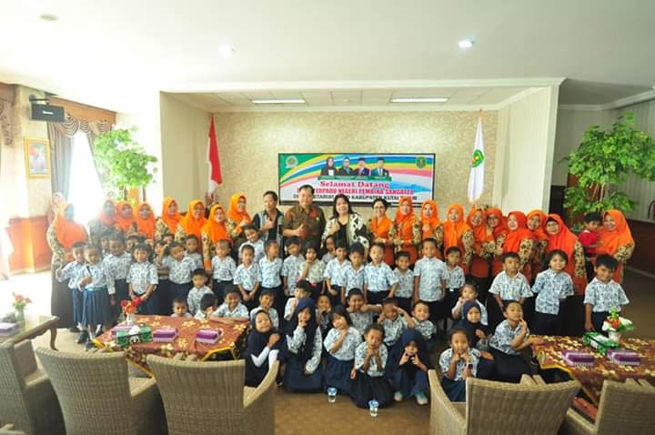 Rombongan anak-anak PAUD TK Negeri Pembina Sangatta ini turut di dampingi oleh Kepala Dinas Pendidikan Kutai Timur Roma Malau dan beberapa orang tua anak