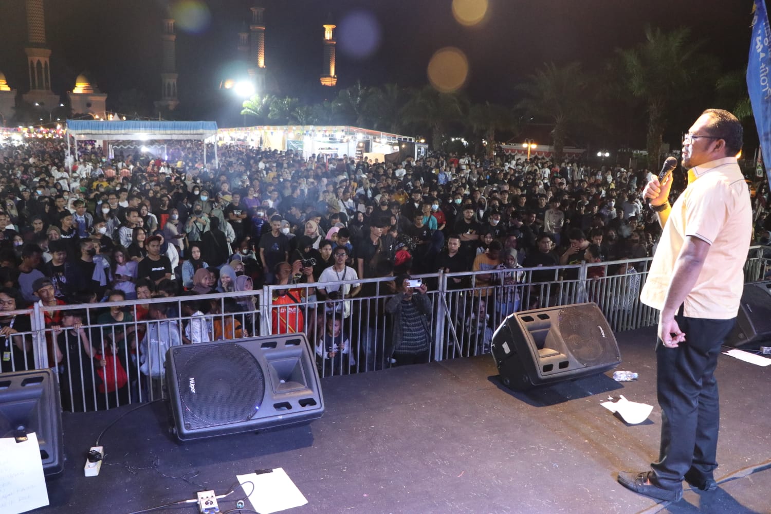 Setelah penutupan, panggung hiburan tetap menyuguhkan penampilan band-band dan tari-tarian hingga jelang tengah malam. (Prokompi/BT3)