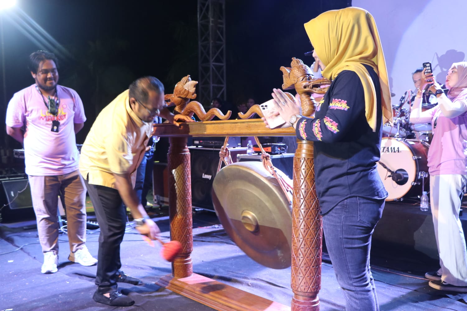 Setelah penutupan, panggung hiburan tetap menyuguhkan penampilan band-band dan tari-tarian hingga jelang tengah malam. (Prokompi/BT3)